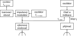 - je doba letu impulzu mezi odvysíláním a příjmem.