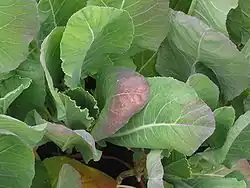 Nedostatek hořčíku u rostlin patří mezi fyziologické poruchy rostlin. Prvním příznakem jsou chlorózy. Při nedostatku draslíku se příznaky zesilují.[L 1] Chlorózy často připomínají mramorování, blednutí listů od okrajů a mezi cévními svazky, které ještě zůstávají zelené. Listy bývají často lámavé a křehké, kořeny slabě vyvinuté. U řepy se porucha projevuje hnědou kropenatostí, u brambor čárkami připomínajícími Y-virus.[L 1] Při nedostatku hořčíku je ochuzena nejdříve řada biologicky významných soustav ještě předtím než dojde na změny u chlorofylu. Projevům chlorózy tak předchází hluboký metabolický rozvrat často doprovázený nekrózami pletiv (korálková mozaika nebo pruhovitost).[13] U jehličin se projevuje zasycháním špiček.
