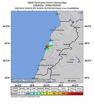 - ↑ M 3.3 Explosion - 1 km ENE of Beirut, Lebanon. earthquake.usgs.gov [online]. [cit. 2025-07-27]. Dostupné online.