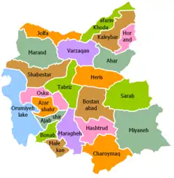 - ↑ a b Āzārbāyjān-e Sharqī (Provinz, Iran) - Einwohnerzahlen, Grafiken, Karte und Lage. web.archive.org [online]. 2022-11-06 [cit. 2024-09-06]. Dostupné v archivu pořízeném z originálu dne 2022-11-06.