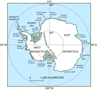 - ↑ FRETWELL, P.; PRITCHARD, H. D.; VAUGHAN, D. G.; BAMBER, J. L. Bedmap2: improved ice bed, surface and thickness datasets for Antarctica. The Cryosphere. 2013-02-28, roč. 7, čís. 1, s. 375–393. ISSN 1994-0424. doi:10.5194/tc-7-375-2013. Bibcode 2013TCry....7..375F. (anglicky)