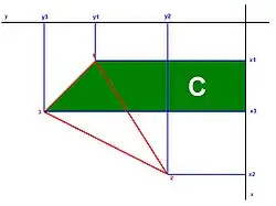 Výpočet spočívá v rozdělení plochy na soustavu lichoběžníků a během vlastního výpočtu pak dochází ke sčítání a odčítání ploch těchto lichoběžníků. Pro výpočet plochy lichoběžníku je užit vzorec