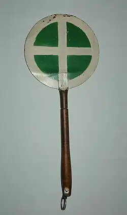 - denní – jedná se o malý kruhový terč na násadě, na terči bílé barvy je zelený kruh rozdělený bílým křížem na čtyři stejně velké kruhové výseče