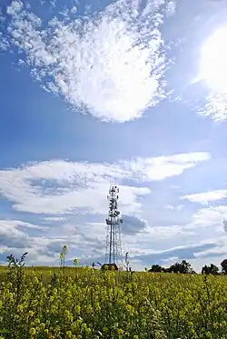 Od vysílače na vrcholu je rozhled západním směrem na Doupovské hory.