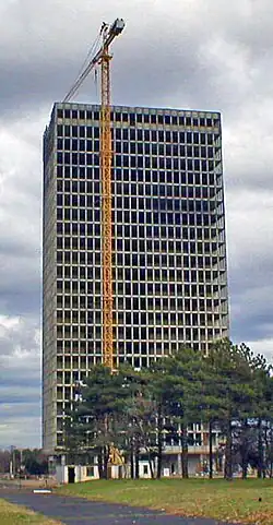 Budova byla postavena roku 1964[2] , jejím účelem bylo stát se novým sídlem pro ústřední výbor Svazu komunistů Jugoslávie. Lidovým názvem pro budovu se stal Ce-Ka, což byla zkratka pro ústřední výbor – srbochorvatsky Centralni Komitet. Budova byla koncipována jako symbol Nového Bělehradu; jako první objekt, který návštěvníci nového sídliště, kteří opouštějí staré město, uvidí.[3] Strohou výškovou budovu obdélníkového půdorysu navrhli pro tehdejší jugoslávskou metropoli Mihailo Janković, Dušan Milenković a Mirjana Marjanović. Projektantem stavby byl Milan Krstić. Umístěním všech pater výškové budovy na masivní betonové sloupy vytvořili architekti stavbu se zavěšenými hliníkovými stěnami.