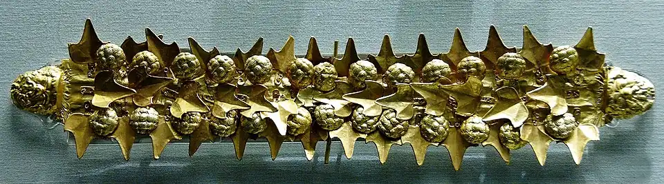- ↑ HIGGINS, Reynold Alleyne. Greek and Roman Jewellery. [s.l.]: University of California Press, 1980. Dostupné online. ISBN 978-0-520-03601-7. (anglicky)
