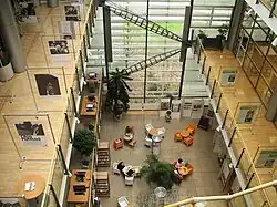 Podobu knihovny ovlivnil i výběr lokality. Do listopadu 1938 zde stála jedna z největších synagog ve střední Evropě, která byla během Křišťálové noci vypálena a srovnána se zemí. Vznikla myšlenka, že synagoga zakomponovaná do budovy knihovny, připomene historii židovské obce ve městě a stavba bude symbolem odškodnění jiných kultur žijících v regionu, jejich smíření ale také připomenutím lidské zvůle a násilí.[5] Stavba knihovny byla zahájena koncem roku 1997 a první návštěvníky přivítala v březnu 2001.