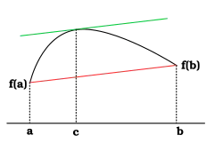 Nechť funkce je spojitá na intervalu , má derivaci v každém bodě intervalu a platí . Pak existuje bod takový, že .