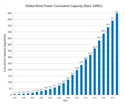 - ↑ Global Wind Energy Council (GWEC) statistics [PDF]. [cit. 2009-05-21]. Dostupné v archivu pořízeném dne 2011-04-07.