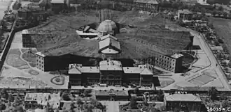 Ohradní zeď měřila původně 3,8 m, postupně byla zvyšovaná, v současnosti je vysoká 7 m. Kolem ohradní zdi je umístěno pět strážních věží.[2]
