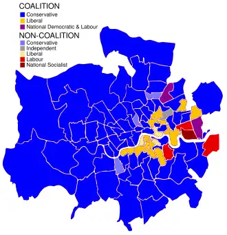 | koaliční národní demokraté | George Nicoll Barnes | 9 | 1,3% | ▲ 9 | 156 834 | 1,5% | |