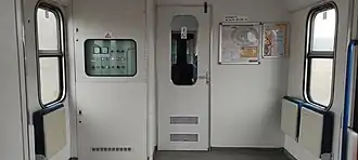 Vozy mají neobvykle umístěné nástupní prostory – nikoliv na koncích skříní, ale přibližně v 1/4 a 3/4 délky. Dvoudílné vstupní dveře s elektropneumaticky ovládanými předsuvnými křídly mají světlost 1 400 mm, a za jízdy jsou blokovány. Mezivozové přechodové dveře jsou řešeny jako jednokřídlé otočné s klikou a panty. Vnitřní oddílové dveře jsou řešeny shodně, ale jsou mnohem lehčí. Okna jsou dvoudílná, vodorovně dělená v poměru 1 : 1, dolní polovina oken je zasklená pevně, horní polovina je výklopná dovnitř v úhlu asi 30 °. V každém oddíle je však zároveň vždy jeden pár oken zasklený pevným neděleným sklem. Zasklení oken i vstupních dveří je provedeno determálním dvojsklem.[1]