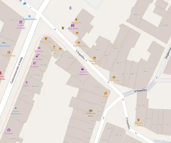 Mapa významných objektů v ulici V Kopečku