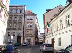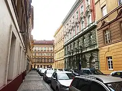 - ↑ a b c STEHLÍK, František. Historický a orientační průvodce ulicemi hlavního města Prahy. Nakladatelství Fr. Stehlíka, Veletržní palác. 1903, roč. 64, s. 432–433.