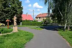 Na návsi se na místě bývalého rybníka nachází protipožární nádrž. U jejího okraje stojí socha svatého Jana Nepomuckého.[8]