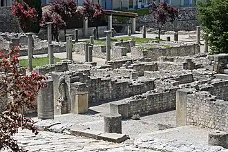 - Římské vykopávky mají plochu asi 13ha a jsou největší ve Francii, přesto představují jen asi pětinu starověkého města z 1.-2. století n. l. Jeho střed s forem a basilikou je totiž překryt moderním městem. Amfiteátr vytesaný ve svahu má asi 5 až 6 tisíc míst. Na východní straně města byl za císaře Augusta vybudován městský chrám, obklopený veřejnými zahradami. Na několika místech byly nalezeny lázně, nejstarší z nich v "Domě stříbrné busty" (Maison de la Buste d'Argent) mají plochu 2 300 m2. Vily jako "Dům s delfínem" nebo "Dům s pávem" také měly mozaikové dlažby a vodní nádrže. Most přes řeku Ouveze měl v historii velký význam jako celnice, ve středověku byl chráněn kamennou věží a je jedním z velmi mála starověkých mostů, který dodnes slouží dopravě.
