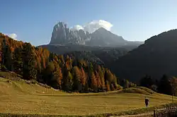 Col Turond při pohledu z Langentalu v údolí Val Gardena v jihotyrolských Dolomitech.