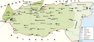 Země Valašsko leží na sever od řeky Dunaj a na jih od Sedmihradska, resp. Karpat, a řeka Olt je rozděluje na dva regiony: východní Muntenii a západní Oltenii. Na severu sousedí s Moldávií a Sedmihradskem, na západě se Srbskem a Banátem, na jihu s Bulharskem, a na východě s Dobrudžou.