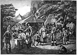 Celá hra končí písní oslavující vojenský život, kterou zpívá dragoun, myslivec a dva kyrysníci. Ostatní, spojeni do sboru, jim přizvukují.