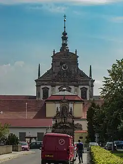 Klášter vybudovali Valdštejnovi italští dvorní mistři. Podle projektu architekta Andrey Spezzy z roku 1627 se stavbou roku 1630 začali jeho bratr Giovanni Battista Spezza a Franz Latomus. V díle pak pokračoval Nicolò Sebregondi a do roku 1655 je dokončil Giovanni Battista Pieroni. Na úpravě interiérů se pracovalo až do roku 1665. Objekty na přibližně obdélném půdorysu jsou uspořádány osově symetricky od vstupní brány podle podélné západo-východní osy s kostelem sevřeným kvadraturou uprostřed areálu. Postranní křídla původně tvořily izolované cely řeholníků, každá s vlastní zahrádkou.