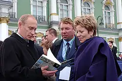 Vladimir Putin a Valentina Matvijenková na Palácovém náměstí v Petrohradě, květen 2003