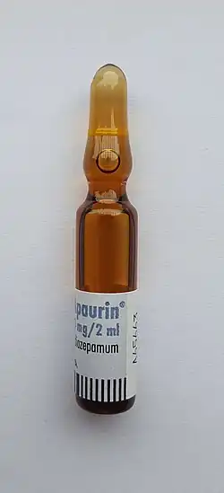 | Indikace | status epilepticus, sedace před a po lékařských výkonech, tetanus, febrilní křeče, stavy se zvýšením svalového tonu, stavy úzkosti, napětí a vzrušenosti |