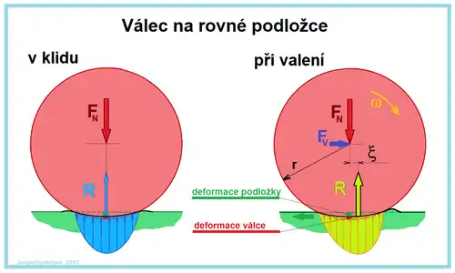Ekvivalentní veličinou činitele smykového tření je činitel valivého odporu, což je poměr .