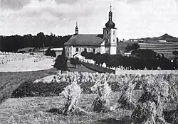 Valkeřický kostel sv. Barbory, zničený v roce 1975 na základě rozhodnutí představitelů okresu Děčín