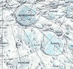 Jižní okraj je nejblíže u kráteru Schrödinger. Začíná poblíž severovýchodního vnějšího valu kráteru Grotrian. Poté pokračuje na sever až severozápad, kde naruší kráter Fechner. Dále pokračuje do severozápadního okraje kráteru Planck a končí v blízkosti kráteru Pikel'ner K.
