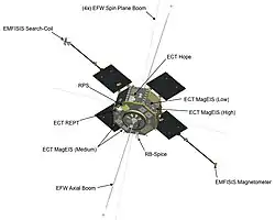 - Energetic Particle, Composition, and Thermal Plasma (ECT) Instrument Suite;[17] hlavním výzkumníkem je Harlan Spence z University of New Hampshire.[18] Klíčovými partnery v tomto výzkum jsou LANL, Southwest Research Institute, Aerospace Corporation a LASP (Laboratory for Atmospheric and Space Physics).