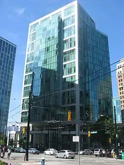 Na rohu ulic Burrard a Nelson stojí bývalá centrála společnosti BC Hydro, nyní obytný dům. V sousedství bývalého kanadského pavilonu z Expa 86, Canada Place se svojí střechou připomínající bílé stany, se od září 2004 rozšiřuje Obchodní a Kongresové centrum, jež bude mít po dokončení v roce 2008 trojnásobně vyšší kapacitu. Během zimní olympiády v roce 2010 zastane funkci hlavního vysílacího střediska pro mezinárodní média. Vedle něho vyrůstá nový hotel s obytnými prostory The Fairmont Pacific Rim, který bude po dokončení dosahovat do výšky 140 metrů. Součástí Kongresového centra je i Cruise Ship Terminal a hotel Pan-Pacific. Dva mrakodrapy dominující výhledu na jih jsou Městská radnice a pavilon Centennial nemocnice Vancouver Hospital.