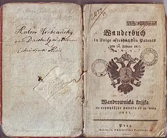 Vydání vandrovní knížky musela schválit vrchnost, zpravidla správa panství, která svázala listy šňůrkou a tu připečetila k přídeští knížky, aby se listy nedaly vyměňovat. Dále vydané vandrovní knížky evidovala pořadovým číslem na první straně. Na druhé a třetí straně byly pro identifikaci tovaryše v němčině a v češtině tyto rubriky: jméno a příjmení, místo narození, okres, země nebo provincie, sídlo vrchnosti (panství), fara, věk, místo stálého bydliště, profese, stav, náboženské vyznání, postava, obličej, vlasy, barva očí, nos, ústa, zvláštní znamení, podpis. Pod tím byla předtištěná instrukce pro mistry, aby při příchodu tovaryše zkontrolovali, zde všechny údaje v popisu souhlasí. Roku 1853 bylo povoleno užívat vandrovní knížku také vojenským vysloužilcům (odpuštěncům), kteří se rozhodli provozovat podomní obchod.