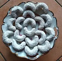 - ↑ a b Vanillekipferl - half-moon vanilla biscuits recipe. www.telegraph.co.uk. 2012-12-03. Dostupné online [cit. 2019-12-24]. ISSN 0307-1235. (anglicky)