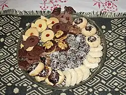 Talíř s různými druhy vánočního cukroví, vanilkové rohlíčky jsou vpravo