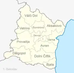 Správním střediskem oblasti je Varna, kromě sídelních měst jednotlivých obštin, přičemž Avren a Vetrino městem nejsou, se zde nachází město Ignatievo.