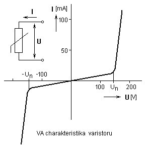 Při zvětšování napětí mezi vývody varistoru dochází nejprve k pomalému a skoro lineárnímu vzrůstu proudu. Odpor součástky je velký a téměř konstantní. Po dosažení napětí Un prudce poklesne vnitřní odpor. Napětí na varistoru se dále zvětšuje málo, dochází však k velkému nárůstu proudu.