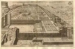 Nádvoří Cortile del Belvedere před výstavbou příčné budovy knihovny