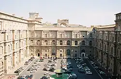 Nádvoří Cortile del Belvedere v současnosti, rozdělené budovou knihovny