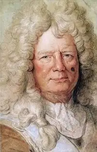Hyacinthe Rigaud: Sébastien Le Prestre de Vauban. Na portrétu je velmi dobře patrná jizva na levé líci po zranění, které utrpěl při obléhání města Douai
