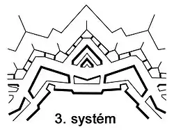 Pozdějšími pevnostními teoretiky byla de Vaubanova práce rozdělena na tři používané systémy, které se od sebe odlišují použitím prvků, rozměrů i tvarů.[19] Do roku 1687 uplatňoval nejčastěji svůj první systém. Ten se vyznačoval poměrně velkou podobností prvků s novoitalskou inženýrskou školou, především s jejími ostroúhlými bastiony, s boky chráněnými orillony.[19] Druhý systém, který začal uplatňovat od roku 1682, se vyznačoval mnohem větší komplikovaností a byl obohacen četnějšími vnějšími prvky.[19] Zde se snažil odstranit chyby z prvního systému a inovovat svůj dosavadní stavební styl. Třetí systém, kterým zdokonalil nedostatky systému druhého, uplatnil pouze na sklonku svého života při stavbě pevnosti Neuf-Brisach.[19]