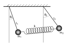 Tyto rovnice reprezentují jednoduchý harmonický pohyb kyvadla s vazebním faktorem pružiny.[1] Obdobné chování lze pozorovat v určitých molekulách (např. CO2 a H2O), v nichž dva z atomů vibrují podobným způsobem okolo centrálního.[1]