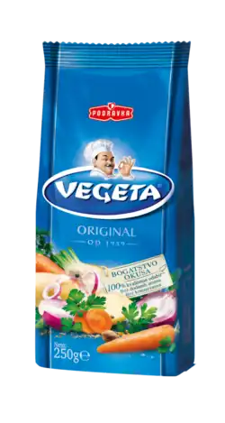 Vegeta Original obsahuje: karotku, petržel, cibuli, pastinák, celer, libeček, česnek, cukr, přírodní zeleninové aroma, jedlou sůl, látku zvýrazňující chuť a vůni.[2]