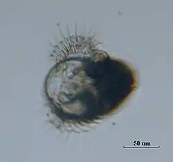 Obrázky, zvuky či videa k tématu veliger na Wikimedia Commons - fotka: veliger plže rodu Ilyanassa, A) normální veliger B) špatně vyvinutý veliger, kterému byla odstraněna blastomera D
