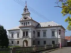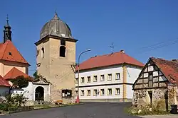 - Jednolodní kostel svatého Jakuba apoštola byl postaven v barokním slohu v roce 1739 na místě staršího kostela zničeného požárem. V jeho těsném sousedství stojí patrová věž zvonice se slunečními a mechanickými hodinami.[25][26]