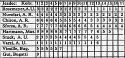 | Pořadí | St. č. | Jezdec | Stáj | Auto | Motor | Kola | Čas/stav | Odstup | |