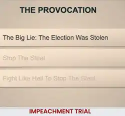 Během druhého impeachmentu Donalda Trumpa použili manažeři sněmovny Jamie Raskin, Joe Neguse, Joaquin Castro, Stacey Plaskettová a Madeleine Deanová opakovaně výraz „velká lež“, který odkazoval na tvrzení o tom, že volby byly ukradeny. Jen během úvodní prezentace padlo celkem 16 zmínek. Tvrzení o „velké lži“ tvořilo první část argumentace, která měla podpořit tvrzení, že Trump vyprovokoval útok na Kapitol.[26][27]