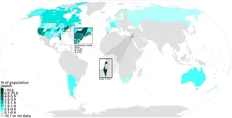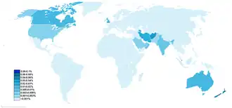 Podle starší analýzy Encyclopædia Britannica z roku 2005 vyznává křesťanství 33 % světové populace, islám 20 %, hinduismus 13 %, čínské lidové náboženství 6,3 % a buddhismus 5,9 %. Ateisté a lidé bez náboženství tvoří asi 14 % populace světa, domorodá kmenová náboženství vyznává 4 % lidstva. [3]
