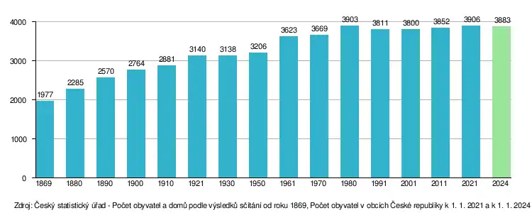 | Počet obyvatel | 1 977 | 2 285 | 2 570 | 2 764 | 2 881 | 3 140 | 3 138 | 3 206 | 3 623 | 3 669 | 3 903 | 3 811 | 3 800 | 3 852 | 3 777 |
