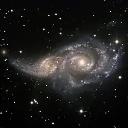 Interagující galaxie NGC 2207 a IC 2163. Autor: ESO