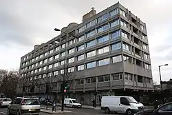 Výstavba nové budovy v brutalistním slohu na tomto místě začala v roce 1965 podle plánů Jana Bočana, Jana Šrámka a Karla Štěpánského z ateliéru Beta Prague Project Institute. Stavba získala cenu od Královského institutu britských architektů za nejlepší budovu ve Spojeném království vytvořenou zahraničními architekty.[2]